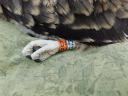 Младший из двух птенцов. Ширина цевки 7.5 х 7.1 мм / коготь задний 17.3 мм / внутренний 18.0 мм / средний 15.4 мм / наружный 13.1 мм. Проба пера D-442.