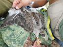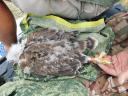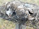 Ширина цевки 10.2 х 9.3 мм / коготь задний 23.9 мм / внутренний 22.7 мм / средний 18.5 мм / наружный 15.1 мм. Проба пера CB-91. 2 птенца и труп 3-го птенца под опорой.