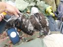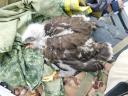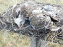Ширина цевки 8.9 х 9.3 мм / коготь задний 22.3 мм / внутренний 21.4 мм / средний 17.8 мм / наружный 14.7 мм. Проба пера CB-92. 2 птенца и труп 3-го птенца под опорой