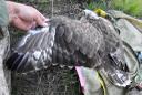Ширина цевки 11.0 х 9.7 мм / коготь задний 26.7 мм / внутренний 25.1 мм / средний 20.6 мм / наружный 16.7 мм. Проба пера C-717. 3 птенца в гнезде.