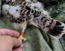 Ширина цевки 5.1 х 4,2 мм / коготь задний 11.5 мм / внутренний 11.4 мм / средний 10.1 мм / наружный 8.8 мм. Проба пера Y-172. 5 птенцов в гнезде.