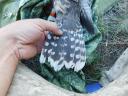 Ширина цевки 8.4 х 8.9 мм / коготь задний 21.4 мм / внутренний 20.3 мм / средний 18.0 мм / наружный 16.7 мм. Проба пера D-701 - окольцевали одного из 3 птенцов - 2 улетели.