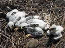 В гнезде 3 птенца, младший из которых не окольцован - слишком мал, кольцо спадает
