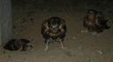 Гнездо на земле в основании бетонной опоры ЛЭП. 3 птенца.