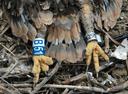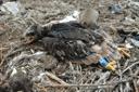 Гнездо на земле. 1 живой птенец + труп второго птенца.