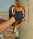 Гнездо на земле в основании бетонной опоры ЛЭП. 1 слёток сильно поеденный мошкой