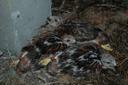 Гнездо на земле в основании бетонной опоры ЛЭП. 3 птенца