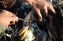 3 птенца. Этот птенец повредил себе правую лапу верёвкой - рану обработали.