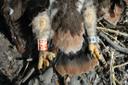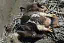 Гнездо на скале. 2 птенца, один из которых (младший) погиб, старшего закольцевали