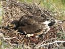 В выводке один птенец, слетел с гнезда, был пойман и возвращен обратно