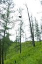 Гнездо на лиственнице. 1 птенец + яйцо-болтун