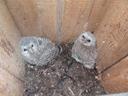 Окольцованы 2 птенца в гнездовом ящике, еще 2 сидят высоко на ели, 2 обнаружены в погадках