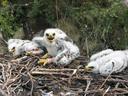 Выводок из трех птенцов, но окольцованы только двое, т.к. младший слишком мал.