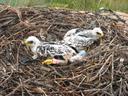 Выводок из двух птенцов, но младший слишком мал для кольцевания.