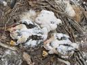 Выводок из трех птенцов, младший слишком мал для кольцевания.