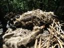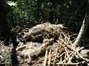 Младший птенец. Выводок из двух птенцов (старший слетел) в гнезде на клене в лесополосе.