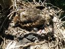 Младший птенец. Выводок из двух птенцов (старший слетел) в гнезде на осине в колке среди полей.