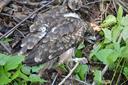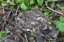 Старший птенец (слеток). Выводок из двух птенцов в гнезде на осине в колке среди полей.