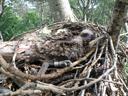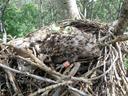 Гнездо на осине в колке среди полей. В гнезде птенец и погибшее яйцо.