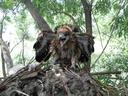 Выводок из одного птенца в гнезде на иве на берегу озера.