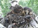 Выводок из трёх птенцов в гнезде на берёзе в пойме р. Бия.