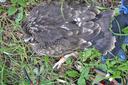Выводок из одного птенца в гнезде на берёзе. Птенец слетел с гнезда, был пойман, окольцован и возвращён обратно.