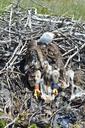 Выводок из одного птенца в гнезде на можжевеловом стланике на уступе скалы.