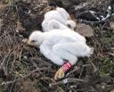 Гнездо на земле. 2 птенца, одного окольцевали.