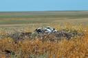 Гнездо на земле на вершине бугра. 3 птенца.