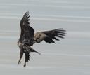 Птица была сфотографирована в Дарвинском заповеднике на прикормке. На побережье озера Изможево. в момент встречи птица держалась рядом со взрослым орланом, в течение 30 минут наблюдения они держались вместе постепенно удаляясь (перелетая на короткие дистанции от наблюдателя). Птица выглядит здоровой.