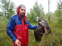 Взрослая самка отловлена у гнезда. окольцована и установлен GPS-GSM-трекер AquilaSYSTEM. Poland. Pah 104