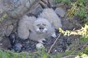 Гнездо в подножии приречной скалы на участке, известном с 2014 г. В гнезде один птенец и погибшее яйцо.