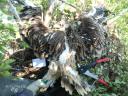 Один птенец в гнезде. Цевка 13х18 мм. Задний палец правой лапы 31 мм коготь 35 мм. Задний палец левой лапы 36 мм коготь 35 мм.