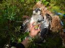 Птенец найден на земле рядом с рухнувшим гнездом. На соседнем дереве построили искусственное гнездо и пересадили птенца. Второй птенец в выводке погиб.