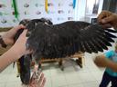 Приёмный птенец из питомника Алтай-Фалкон. Взята проба перьевой трубки. Проба №25. Ширина цевки 7.0 x 7.5 мм. Коготь задний 18.5 мм. Коготь внутренний 17.2 мм. Коготь средний 15.5 мм. 16.06.2018 при мечении трекером птенец был повторно измерен: Клюв от лба 24.8. Клюв от восковицы 20.3. Клюв от ноздри 19.3. Высота клюва 14.3. Разрез рта 30.0. Цевка 67.2 или 69.2. Ширина цевки 8.2 х 6.7. Коготь средний 16.4. Коготь задний 19.0. Коготь внутренний 17.7. Крыло 300. Хвост 191.