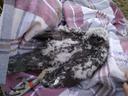 Подсаженный птенец из питомника Витасфера. Взята проба перьевой трубки. Проба №44. Ширина цевки 6.8 x 6.5 мм. Коготь задний 18.8 мм. Коготь внутренний 17.3 мм. Коготь средний 15.0 мм.