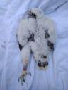 Подсаженный птенец, взятый из гнезда FC-RT011-1. Взята проба перьевой трубки. Проба №50. Ширина цевки 8.0 x 7.0 мм. Коготь задний 17.6 мм. Коготь внутренний 15.7 мм. Коготь средний 14.0 мм.