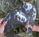 Подсаженный птенец из питомника Витасфера. Передатчик надет 18/06/2018. Измерения 10/06/2018: ширина цевки 6.8 х 6.7 мм. Коготь задний 19.0 мм. Коготь средний 15.6 мм. Коготь внутренний 17.5 мм. Взята проба пера № 46.