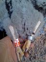 Один из четырех птенцов выводка. Пробирка № 75. Ширина цевки 9.5 x 8.2. Когти - задний 20.3 - средний 15.8 - внутренний 19.5 мм.