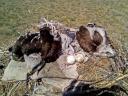 Один из двух птенцов выводка (темный) + 2 яйца с погибшим эмбрионом. Пробирка № 92. Ширина цевки 11.8 x 9.0. Когти - задний 22.9 - средний 17.2 - внутренний 18.7 мм.