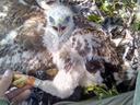 Один из четырех птенцов выводка - окольцевали троих.