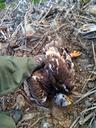 Поясница однотонная, крыло трёхрядное, затылочное пятно малое в 1 перо. Взята проба перьевой трубки. Ширина цевки: 12.0 x 12.0 мм Коготь задний: 28.5 мм внутренний: 27.0 мм средний: 23.0 мм