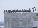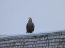 Птица сфотографирована в зимнем скоплении орланов.