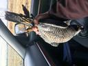 Птица была отловлена с целью, чтобы отвести её от голубятни, так как она убила 11 голубей. У птицы есть застарелая рана, а именно заросшая ноздря, из-за чего птица дышит тяжело. Сообщается, что птицу выпустят после лечения ноздри. Информацию прислал Игорь Довгань в ВК.