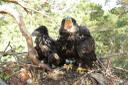 Старший птенец из двух. Толщина цевки 17х19.5 мм. Длина заднего когтя - 41 мм внутреннего - 40 мм среднего - 34 мм внешнего - 29.5 мм. Птица получила имя Сара.