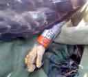 Один из четырех птенцов выводка. Взята проба перьевой трубки - пробирка № 757. Доп. измерения: цевка по Лене 90.4 мм. диаметр цевки 9.8 х 8.9 мм. коготь: задн. 23.2 мм. средний 18.6 мм. внутр. 22.2 мм.