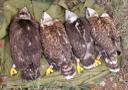 Старший темный из четырех птенцов выводка. Взята проба перьевой трубки - пробирка № 854. Доп. измерения: цевка по Лене 90.4 мм. диаметр цевки 8.5 х 8.1 мм. коготь: задн. 21.9 мм. средний 18.1 мм. внутр. 21.9 мм.
