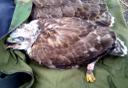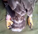 Один из двух птенцов выводка. Взята проба перьевой трубки - пробирка № 86. Доп. измерения: цевка по Лене 95.0 мм. диаметр цевки 10.5 х 8.0 мм. коготь: задн. 26.2 мм. средний 19.7 мм. внутр. 25.0 мм.