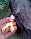 Старший темный из четырех птенцов выводка. Взята проба перьевой трубки - пробирка № 872. Доп. измерения: цевка по Лене 92.3 мм. диаметр цевки 10.5 х 8.5 мм. коготь: задн. 23.3 мм. средний 18.2 мм. внутр. 22.7 мм.