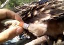 Младший из двух птенцов выводка. Взята проба перьевой трубки - пробирка № 93. Доп. измерения: цевка по Лене 66.5 мм. диаметр цевки 7.7 х 6.6 мм. коготь: задн. 16.7 мм. средний 14.2 мм. внутр. 17.2 мм.